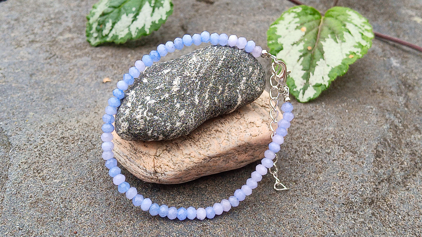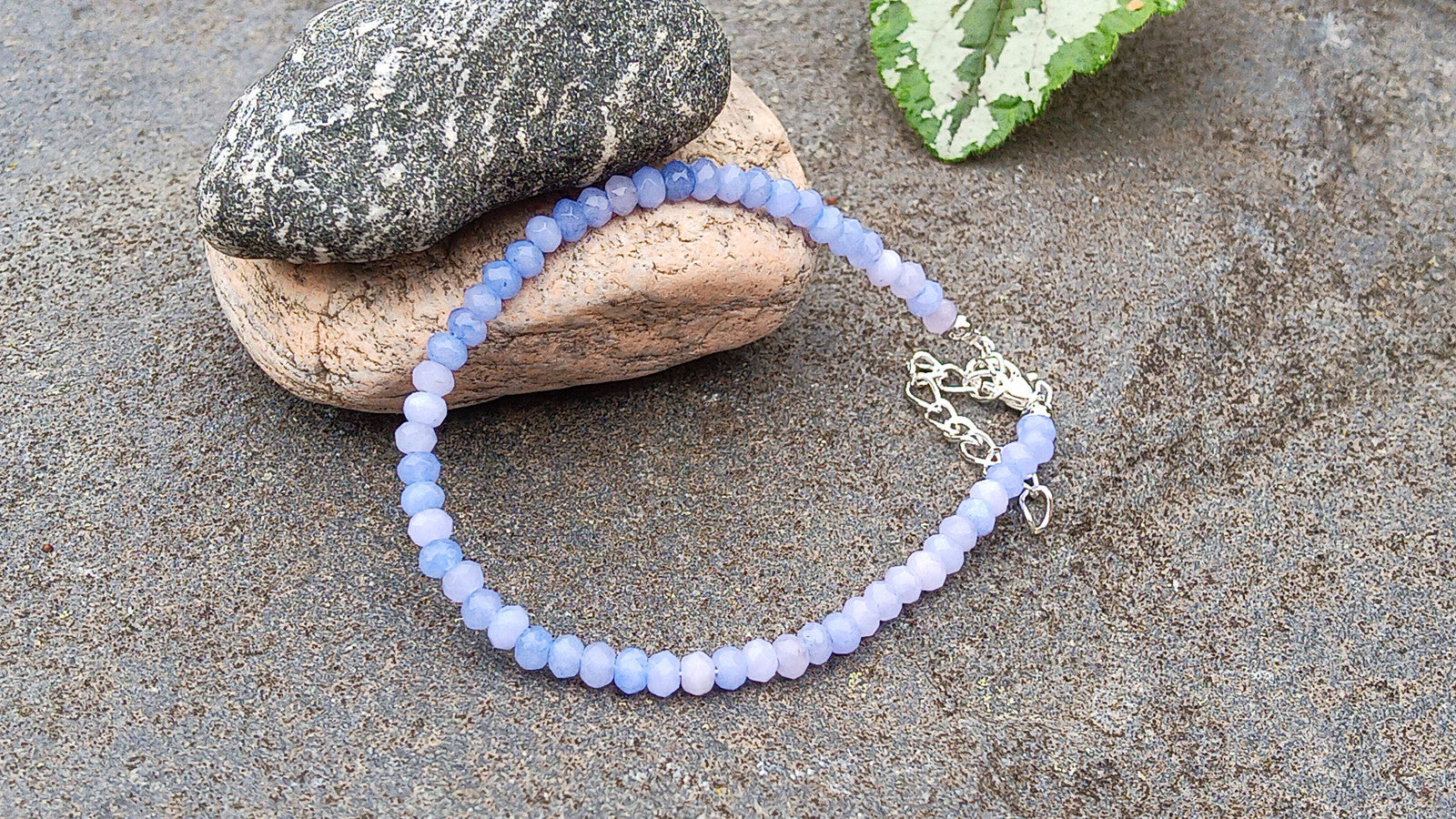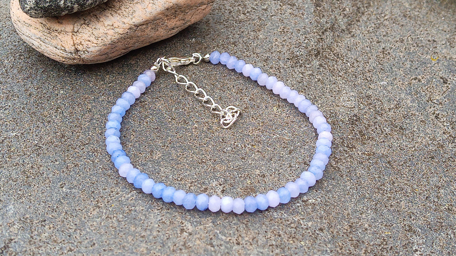 - Materiál: Náramek je tvořen drobnými, fasetovanými (broušenými) korálky přírodního tanzanitu a doplněn kvalitními kovovými komponenty.