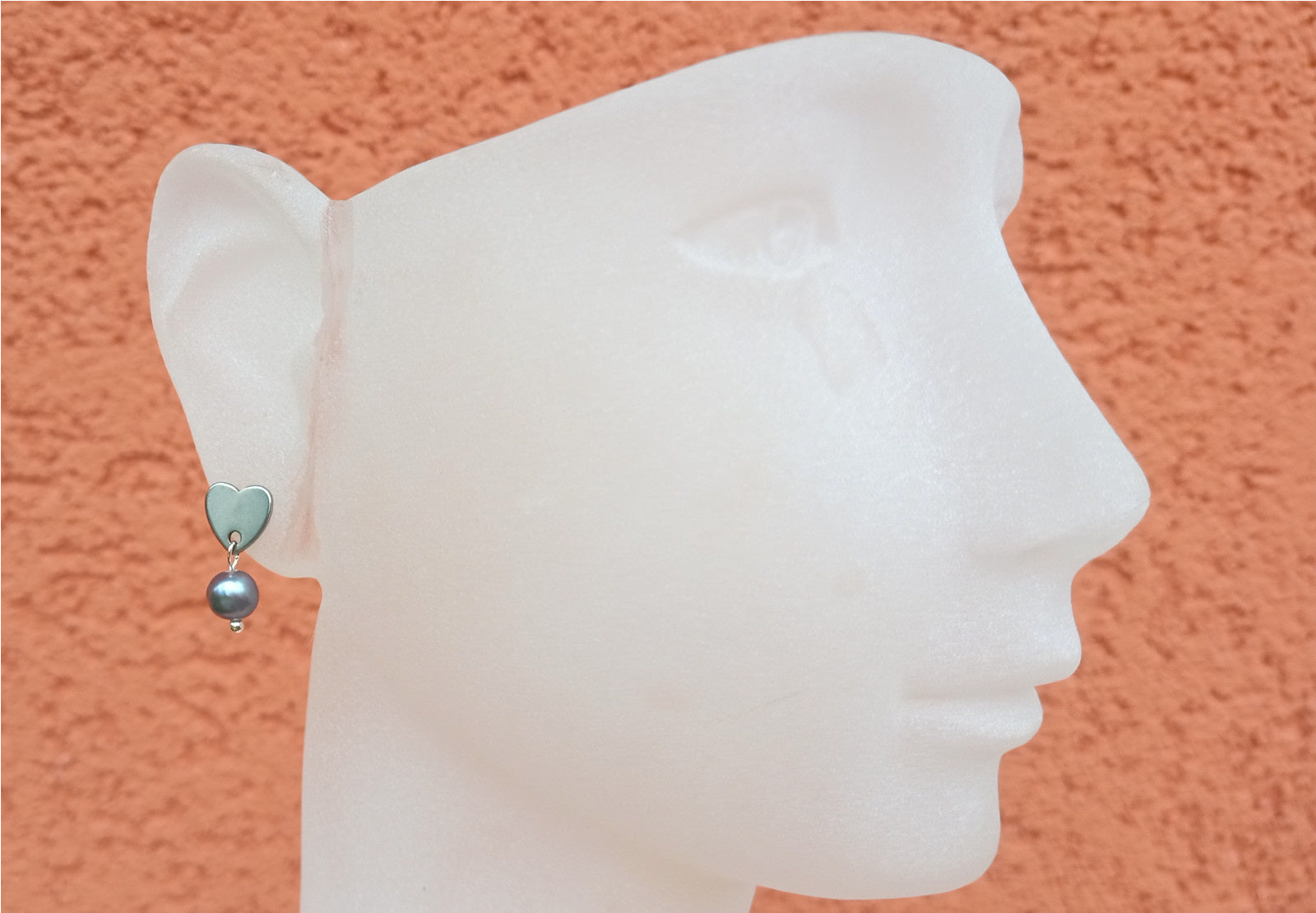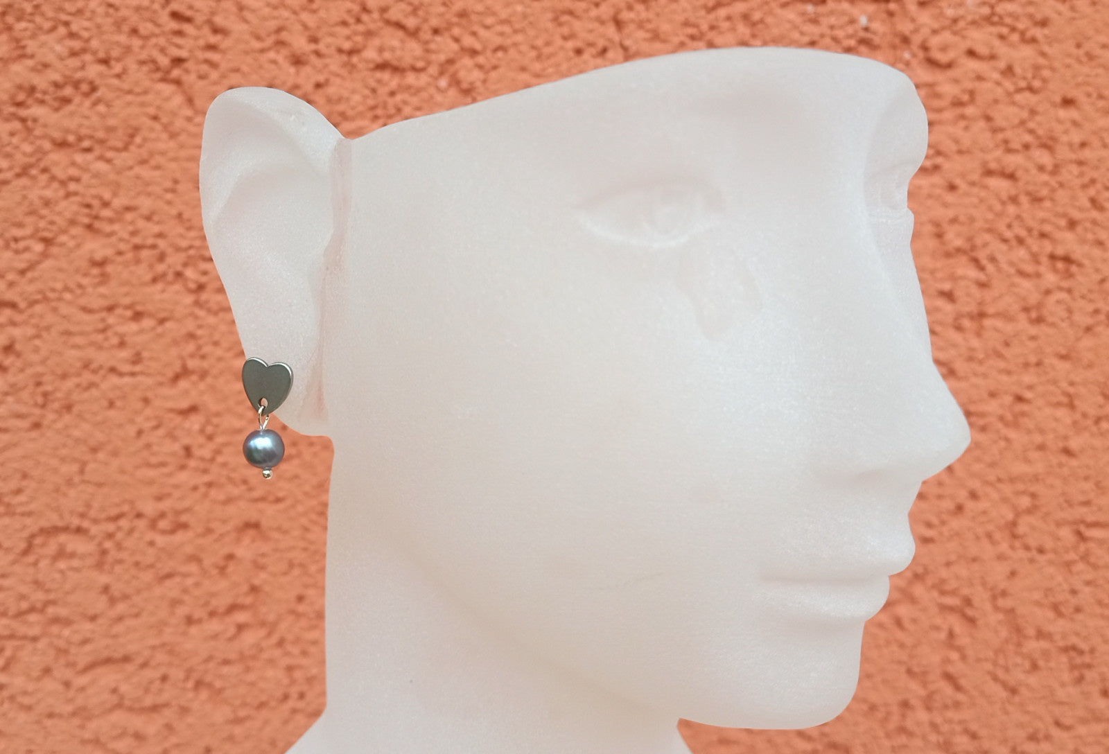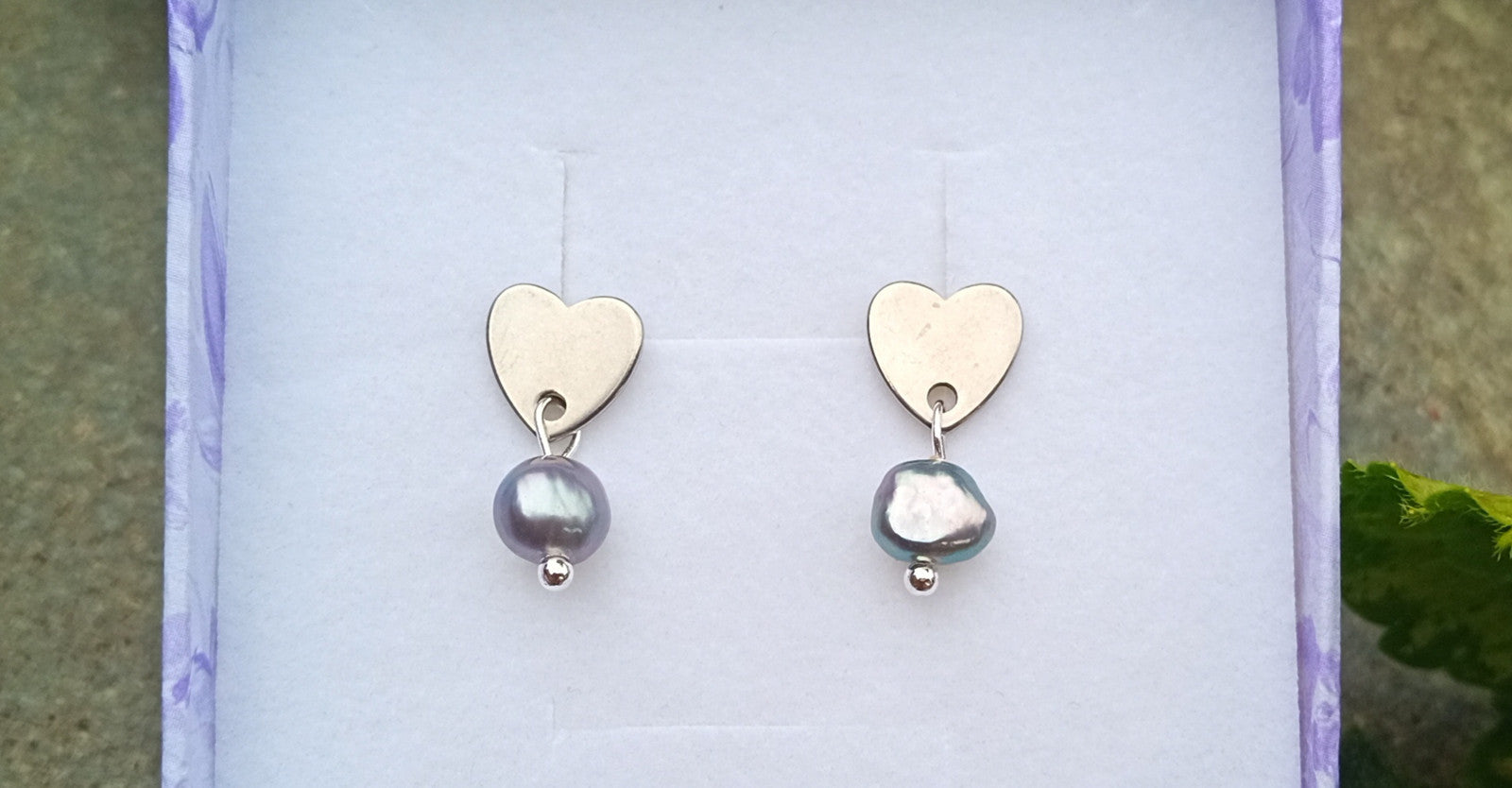 Náušnice s říčními perlami pod srdíčkem z chirurgické oceli