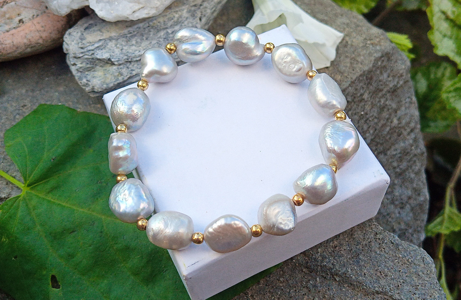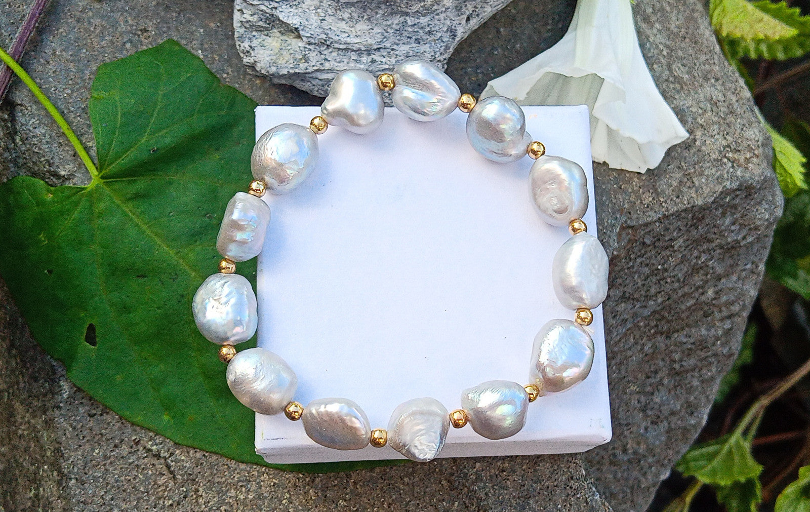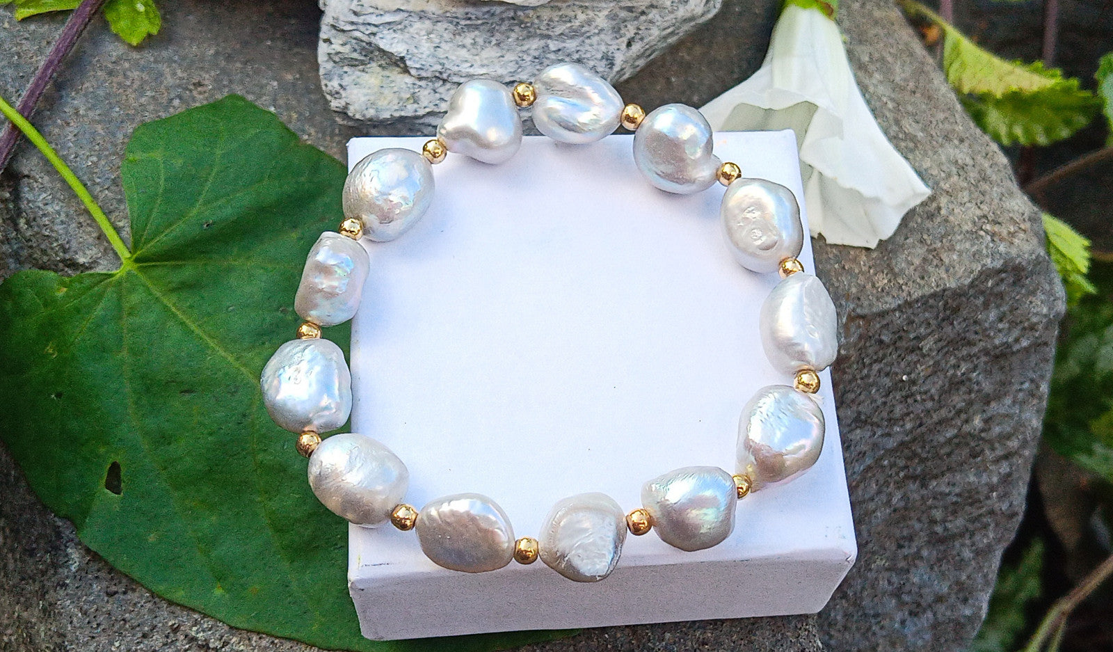 Říční perly jsou ceněné pro svůj sametový lesk a přirozený charakter, který působí elegantně, ale nikdy okázale. Díky organickému tvaru a jemným nuancím barev má náramek nadčasový vzhled, který snadno doplní každý outfit.
