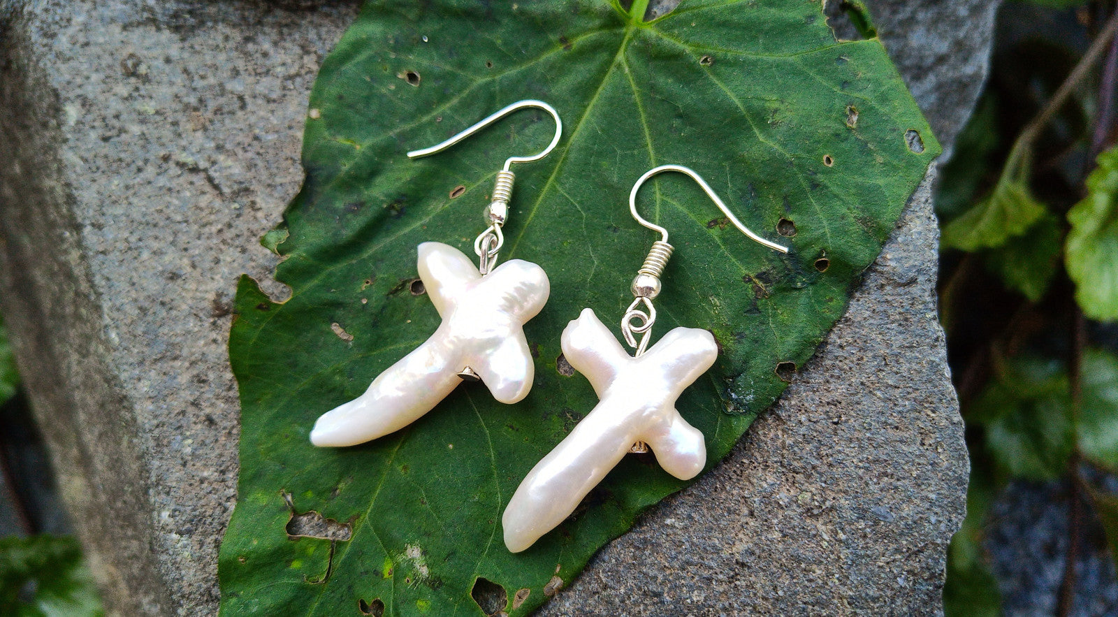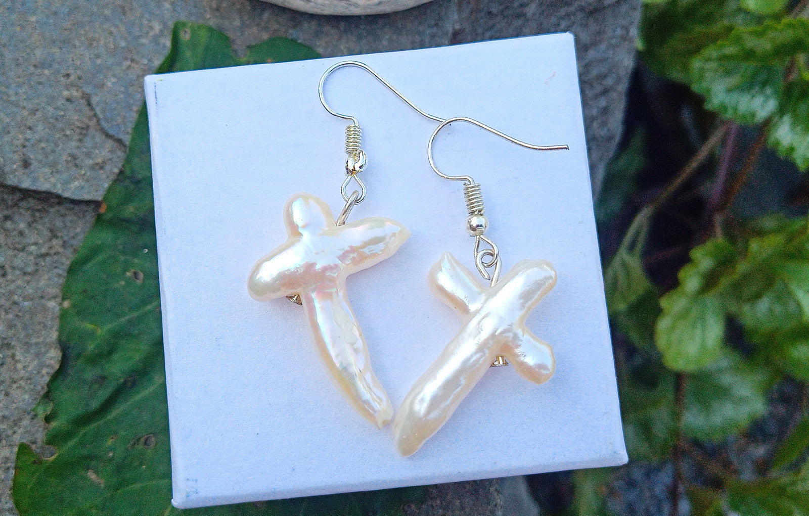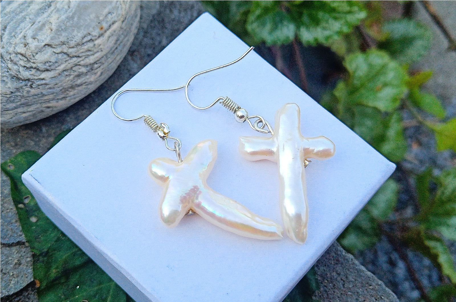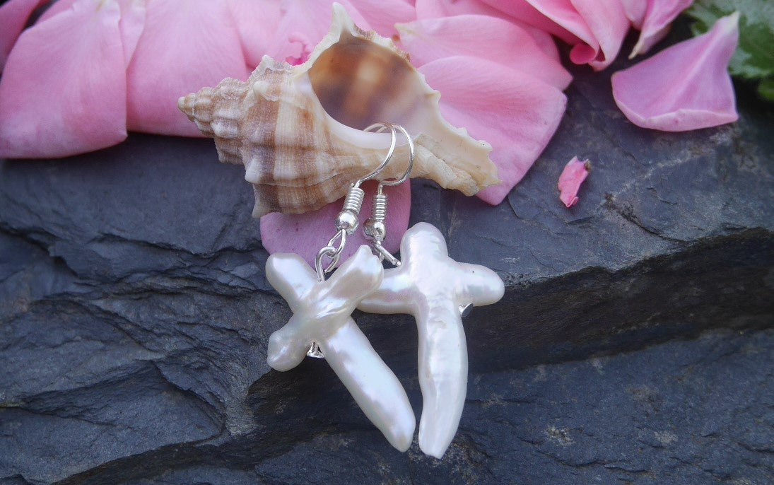 Unikátní jihomořské perly Cross náušnice na chirurgické oceli