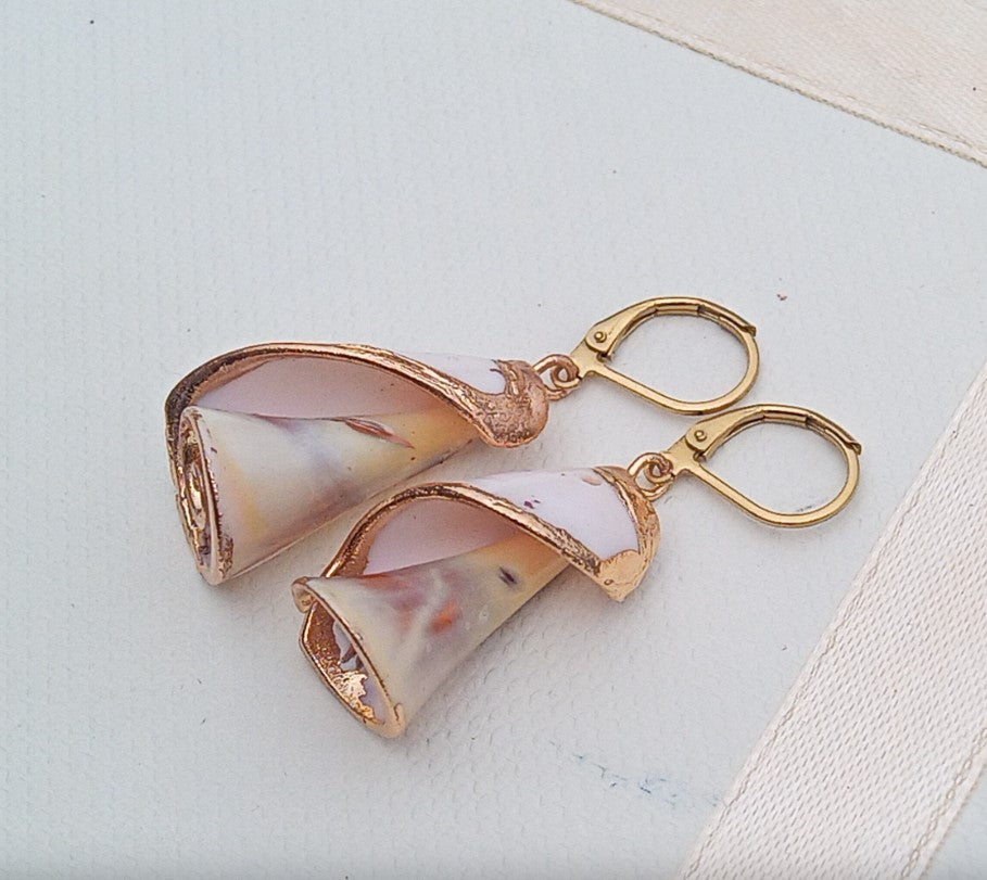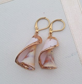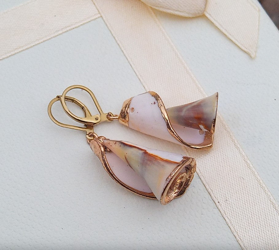 Náušnice z vzácných mušlí z Filipín, pozlacená chirurgická ocel